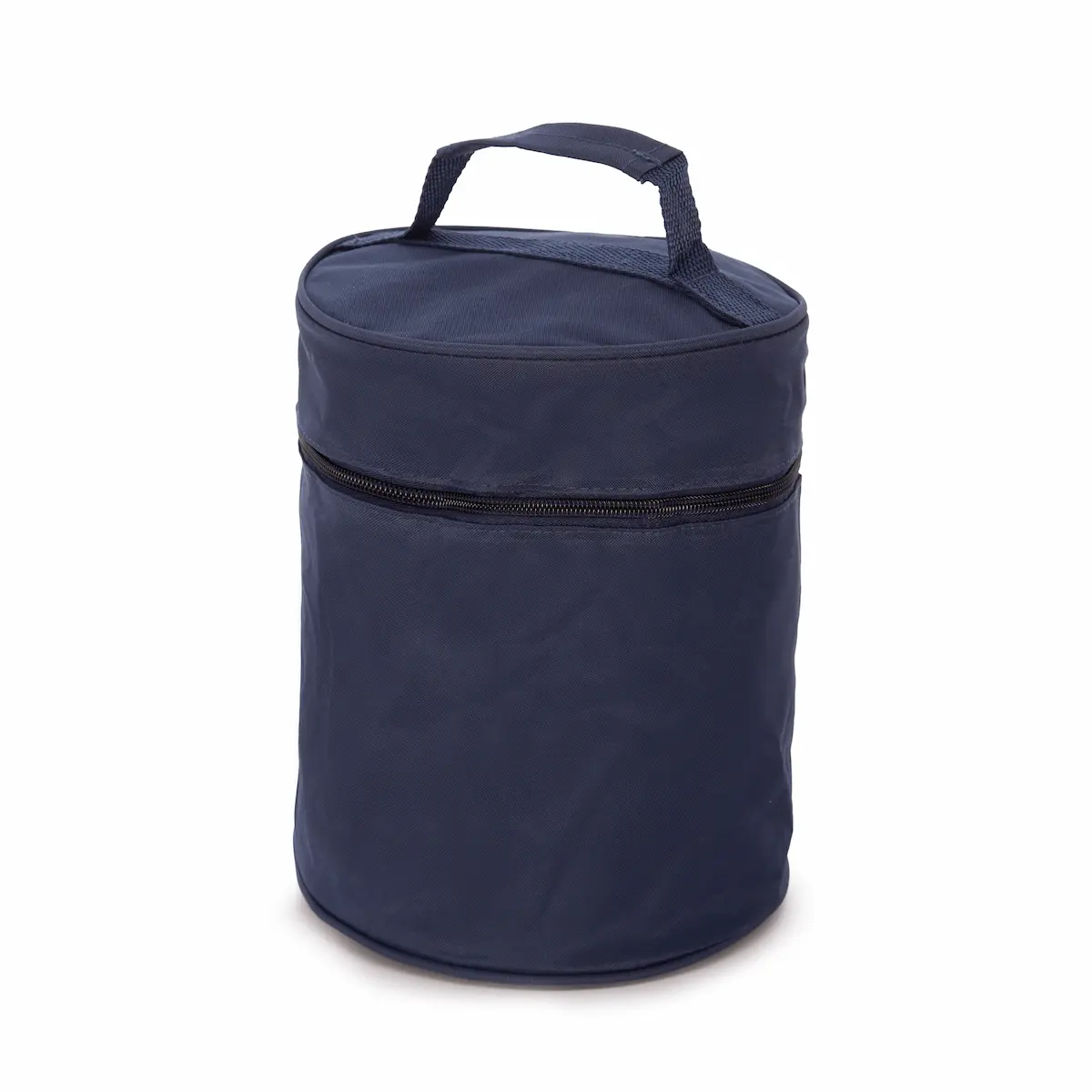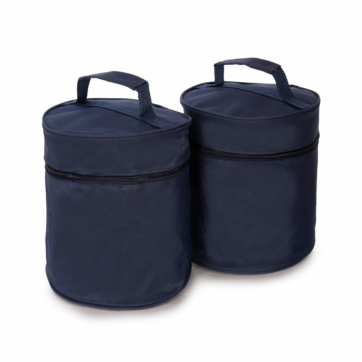 Funda cilíndrica de poliéster con cremallera y asa, ideal para el transporte y presentación de urnas funerarias. Disponible en dos tamaños y varios colores, es resistente, discreta y fácilmente personalizable para adaptarse a diferentes estilos o servicios.